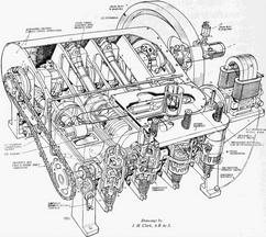 "The body of the first engine was of cast aluminum and was bored