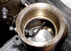 A detail showing a piston in its cast-iron cylinder. The cylinder is