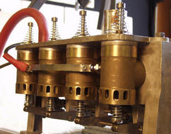 chambers, while the cam-operated exhaust valves are at the bottom.