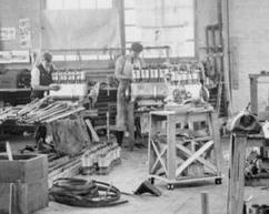 Workmen assemble Wright 440 engines in the Wright factory in 1911.