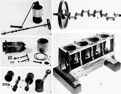 The engine block (lower right), crankshaft (upper